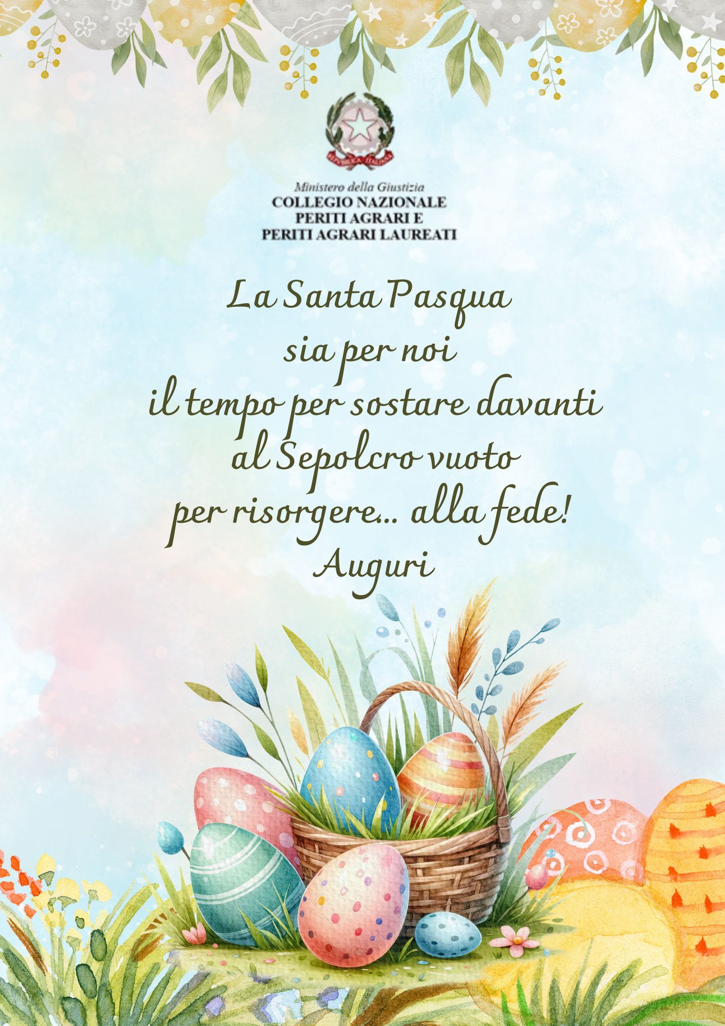 Il Consiglio Nazionale dei Periti Agrari e Periti Agrari Laureati Augura a tutti una serena e gioiosa Pasqua.