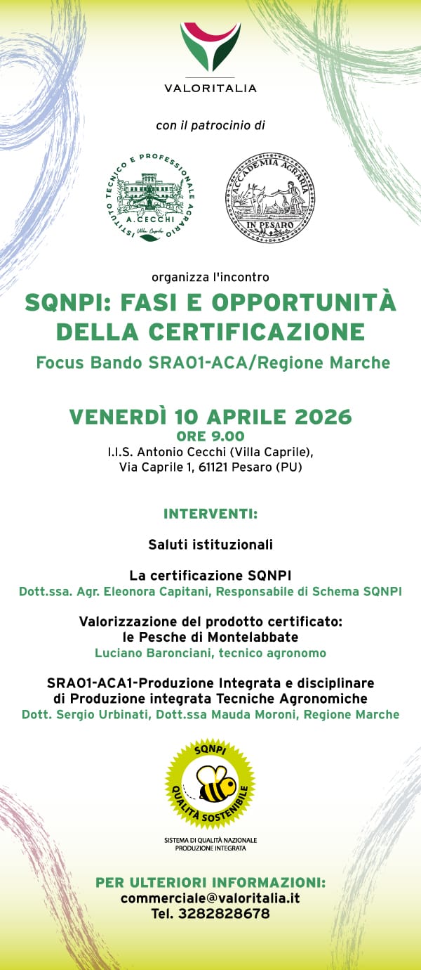 dal titolo "SQNPI: fasi e opportunità della certificazione" venerdì 10 aprile presso l'IIS Cecchi di Pesaro (Villa Caprile) alle ore 9:00.