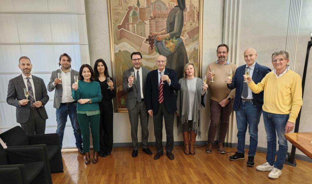 Non poteva che chiudersi con un brindisi l’incontro che si è tenuto nella Sala Ricchetti della sede centrale della Banca di Piacenza per la firma della convenzione che l’Istituto di credito di via Mazzini ha stipulato con l’Università Cattolica del Sacro Cuore, sede di Piacenza, che – attraverso il suo Centro di ricerca BioDNA – predisporrà le attività finalizzate all’iscrizione dei vitigni autoctoni Molinelli e Lisöra nei registri regionali e nazionali delle varietà di vite coltivabili (condizione necessaria per poter far uscire queste cultivar dal limbo della sperimentazione e trasformarle in materia prima per la produzione di vino per il mercato). Un progetto che si avvale del patrocinio di Consorzio Tutela Vini Doc Colli Piacentini (presente il presidente Marco Profumo) e Camera di Commercio dell’Emilia, con la Banca locale parte attiva nel sostegno finanziario all’attività di ricerca finalizzata all’iscrizione di cui si è detto, grazie alla segnalazione dell’opportunità di valorizzare i vitigni del territorio piacentino fatta dall’Ordine dei periti agrari di Piacenza, rappresentata nell’occasione dal suo presidente Carlo Zazzali, da Salima Corti e da Mauro Saccardi.